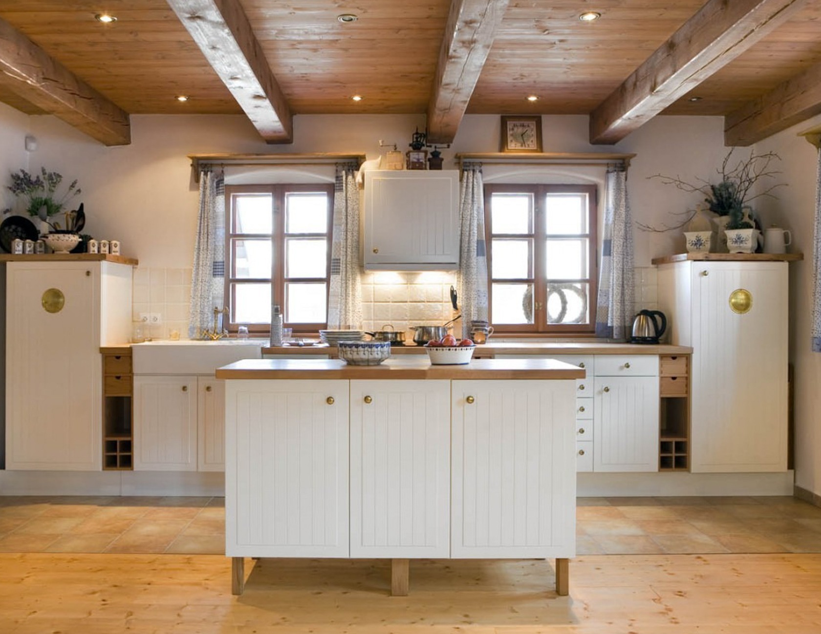 Tři ložnice, útulná světnice s krbem a plně vybavená kuchyně.